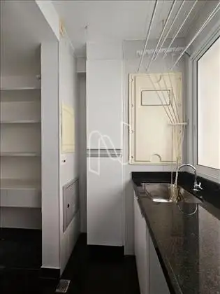 Cozinha e área de serviço com armários.