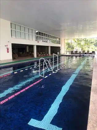Área de lazer com quadra de esportes, piscina, churrasqueira, sauna e salão de festas equipado.