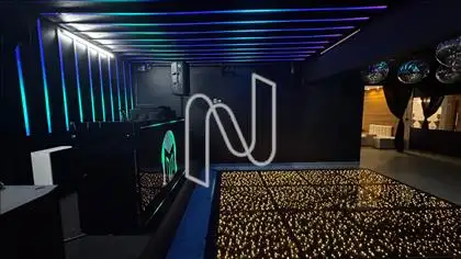 -Ambiente conta com som sob medida assim como iluminação;